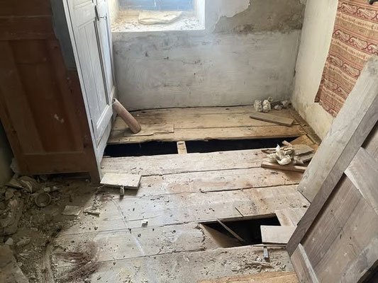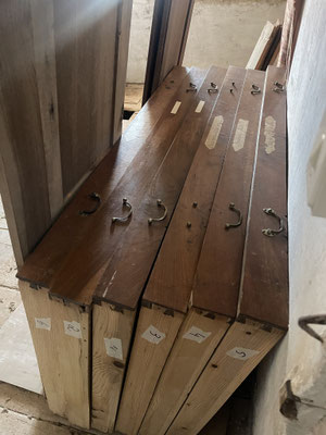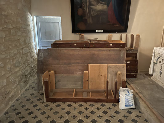 Démontage du meuble "monumental" dans la sacristie pour remise en état en atelier.
